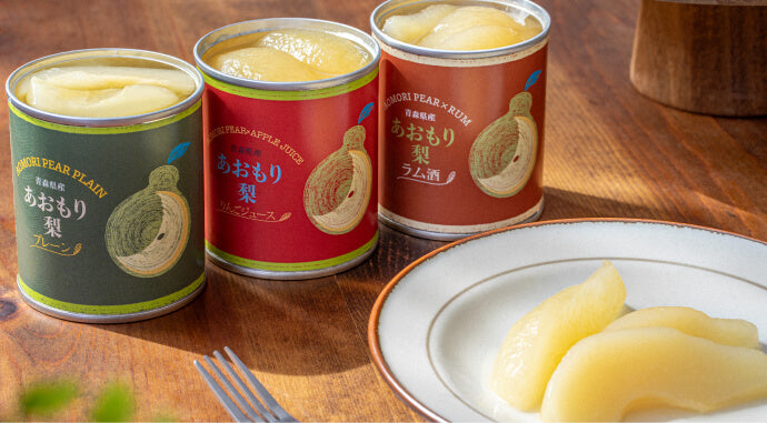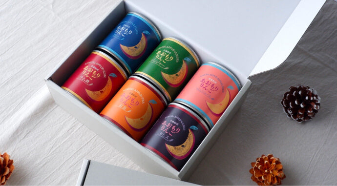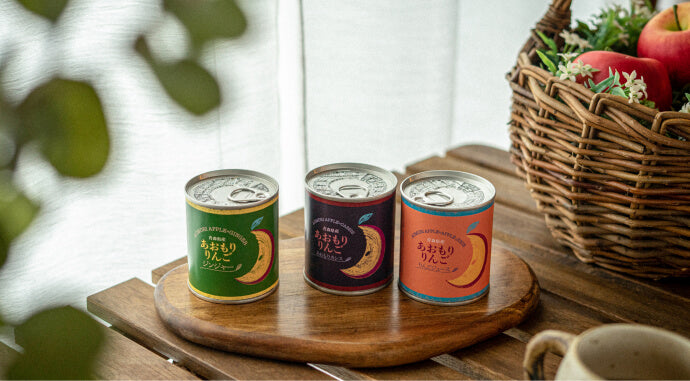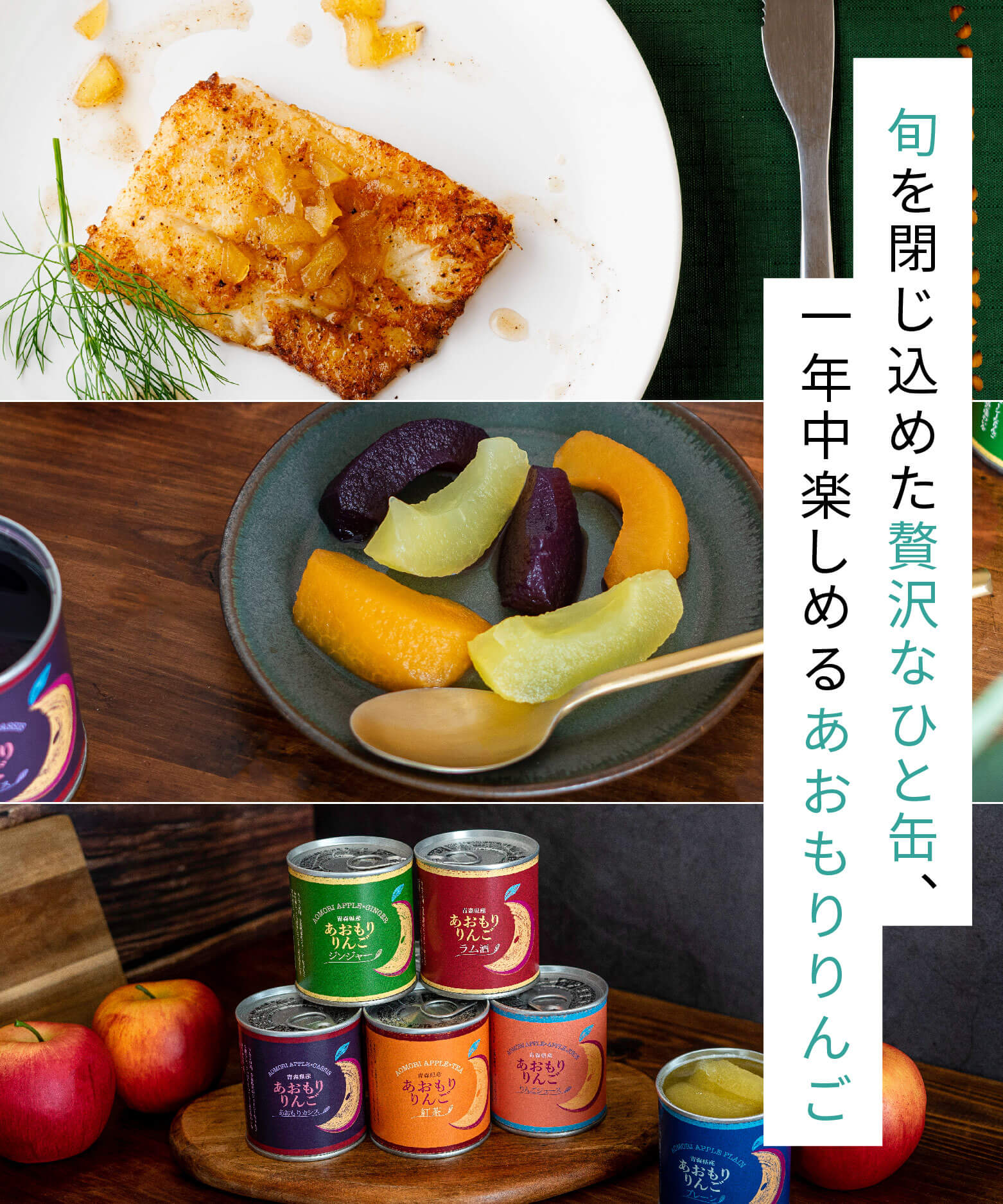 りんごの国、青森県のジューシーなりんごを使用した、さっぱりしつつも上品な味わいの缶詰。アレンジのきくシンプルなプレーン味、芳醇なラム酒に漬け込んだラム酒味、香りが高い紅茶とりんご の味わいを楽しめる紅茶等、6種類のフレーバーを一年中楽しむことができます。